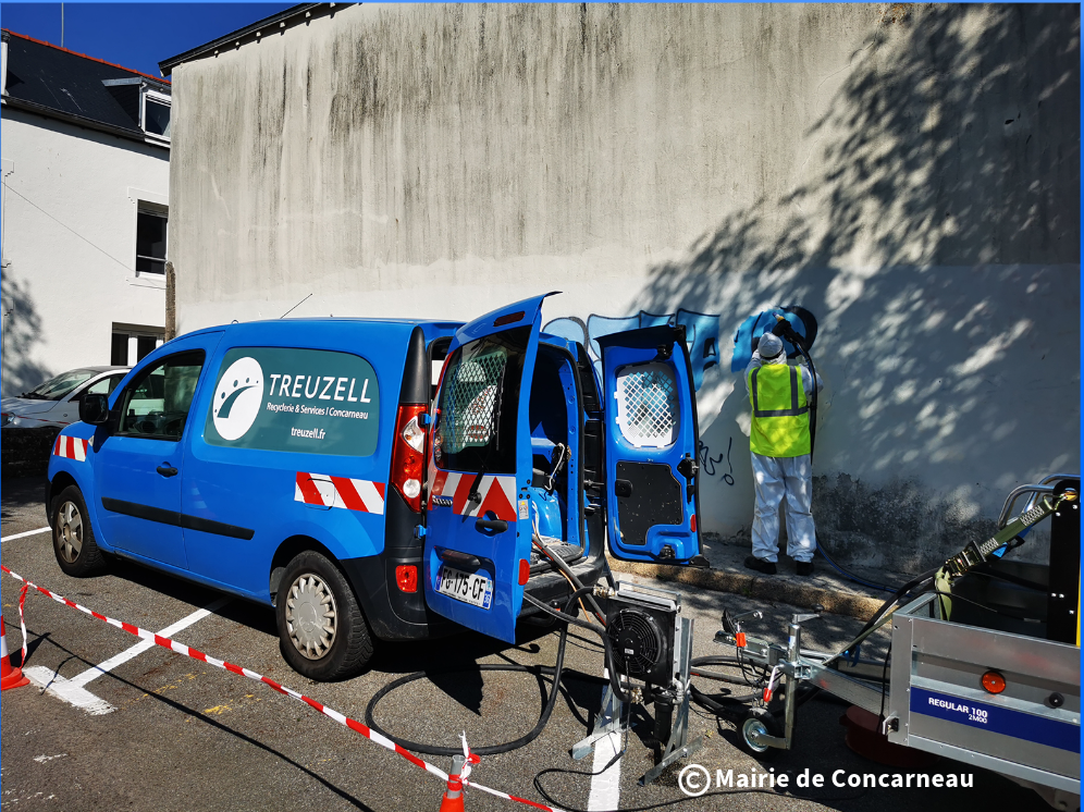 Les équipes interviennent avec réactivité et professionnalisme pour effacer les graffitis sauvages, plusieurs techniques sont utilisées : peinture sur tags, aérogommage ou traitement chimique